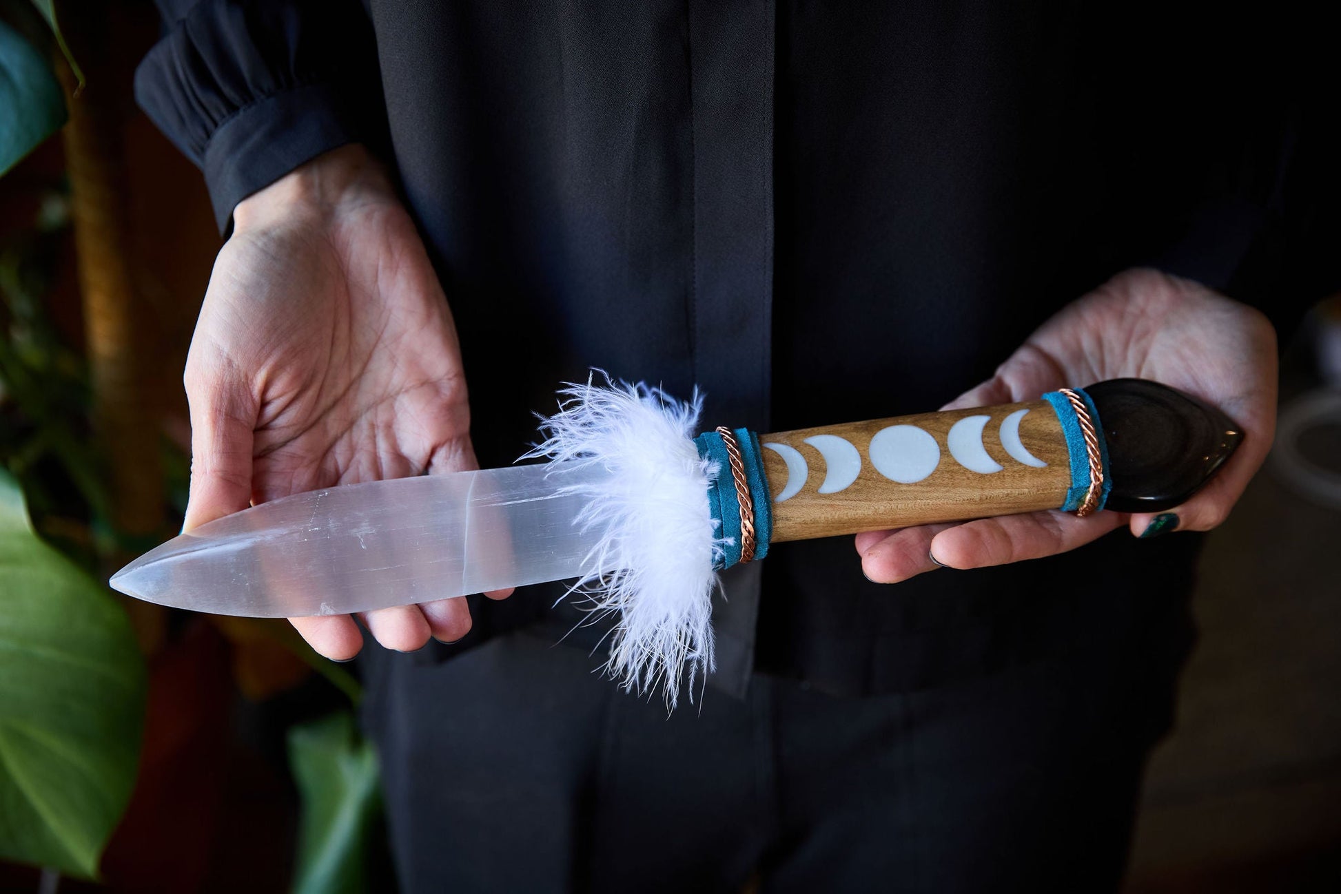 SELENITE ATHAME - SELENITE SWORD - MOON